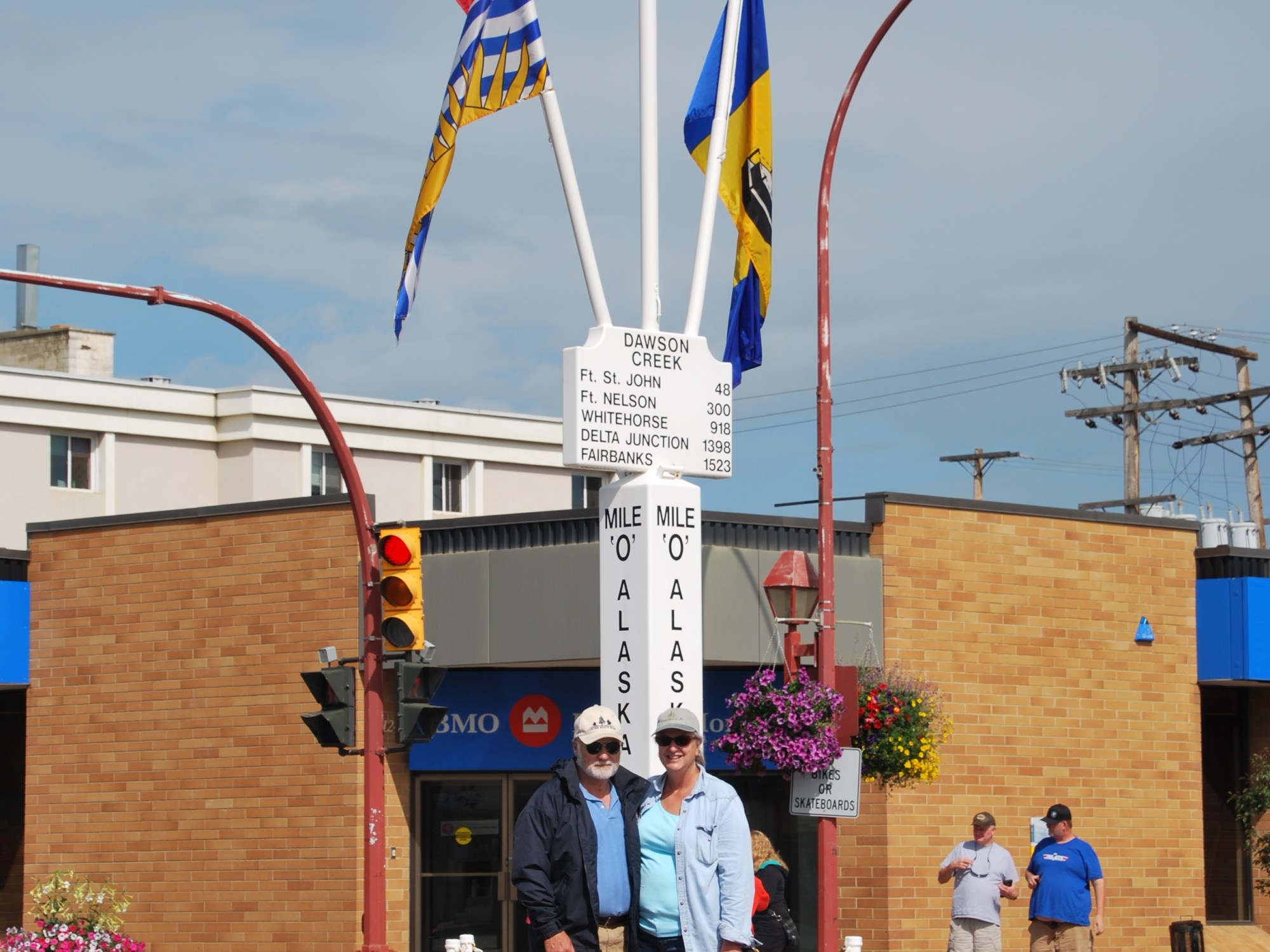 A noteworthy part of the journey, the start at Mile O of the famous Alcan Highway. Between Dawson Creek and Fort Nelson, they crossed over the last remaining bridge from the original construction, a wooden engineering marvel.