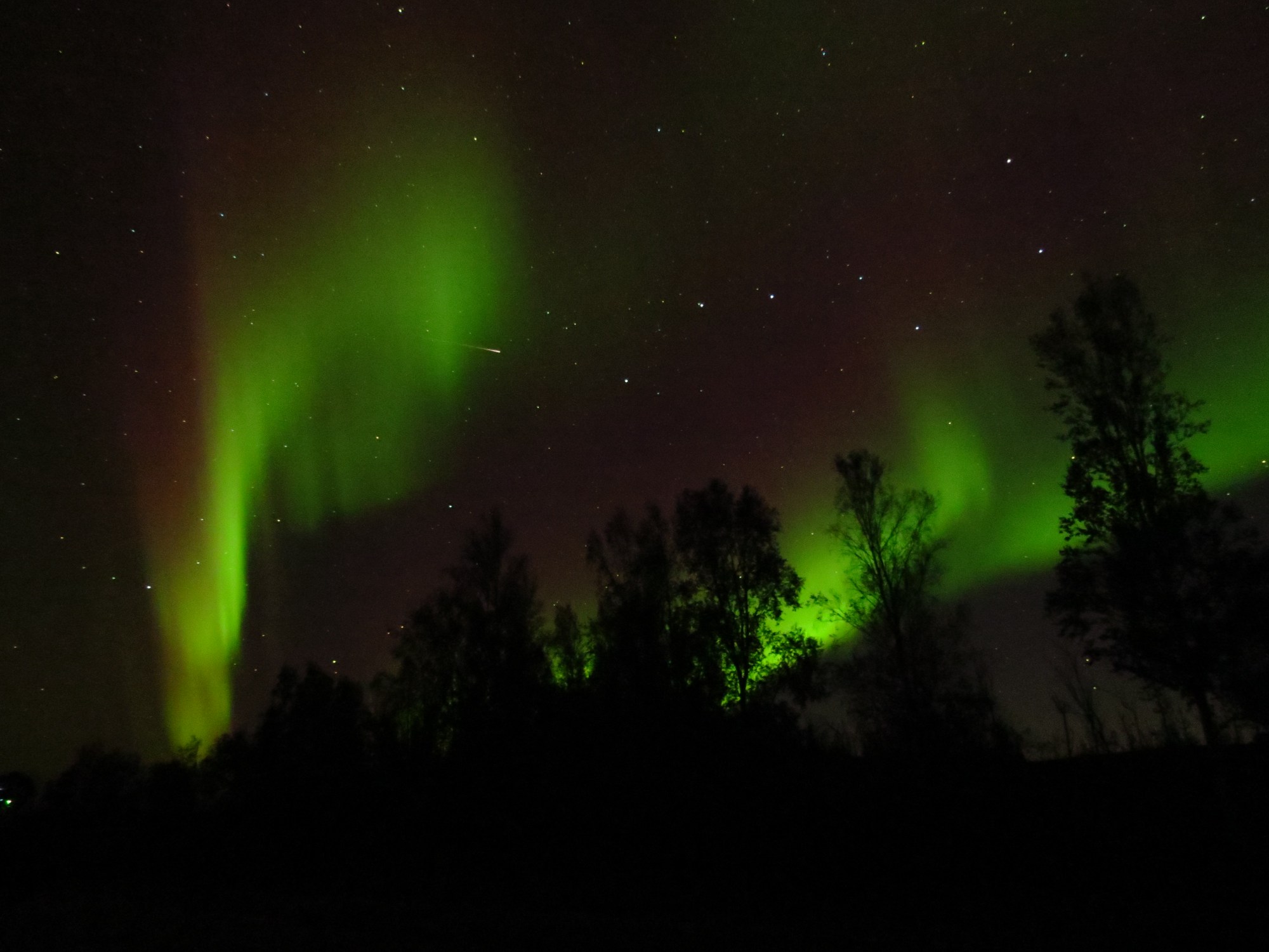 The streaks finally emerged along with countless stars. The four travelers were very glad they had played with their cameras the previous two nights to work out the manual setting bugs. The lights are shifty and unpredictable – glowing brightly and oscillating, then gone – so no time to play with camera settings!
